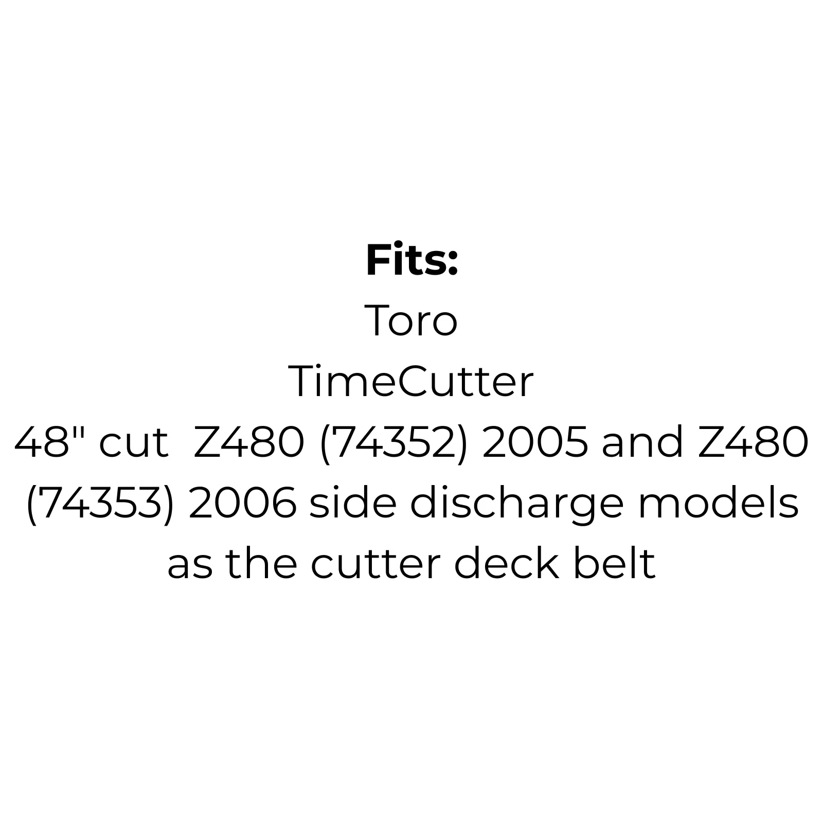 48" cut Z480 (74352) 2005 and Z480 (74353) 2006 side discharge models as the cutter deck belt